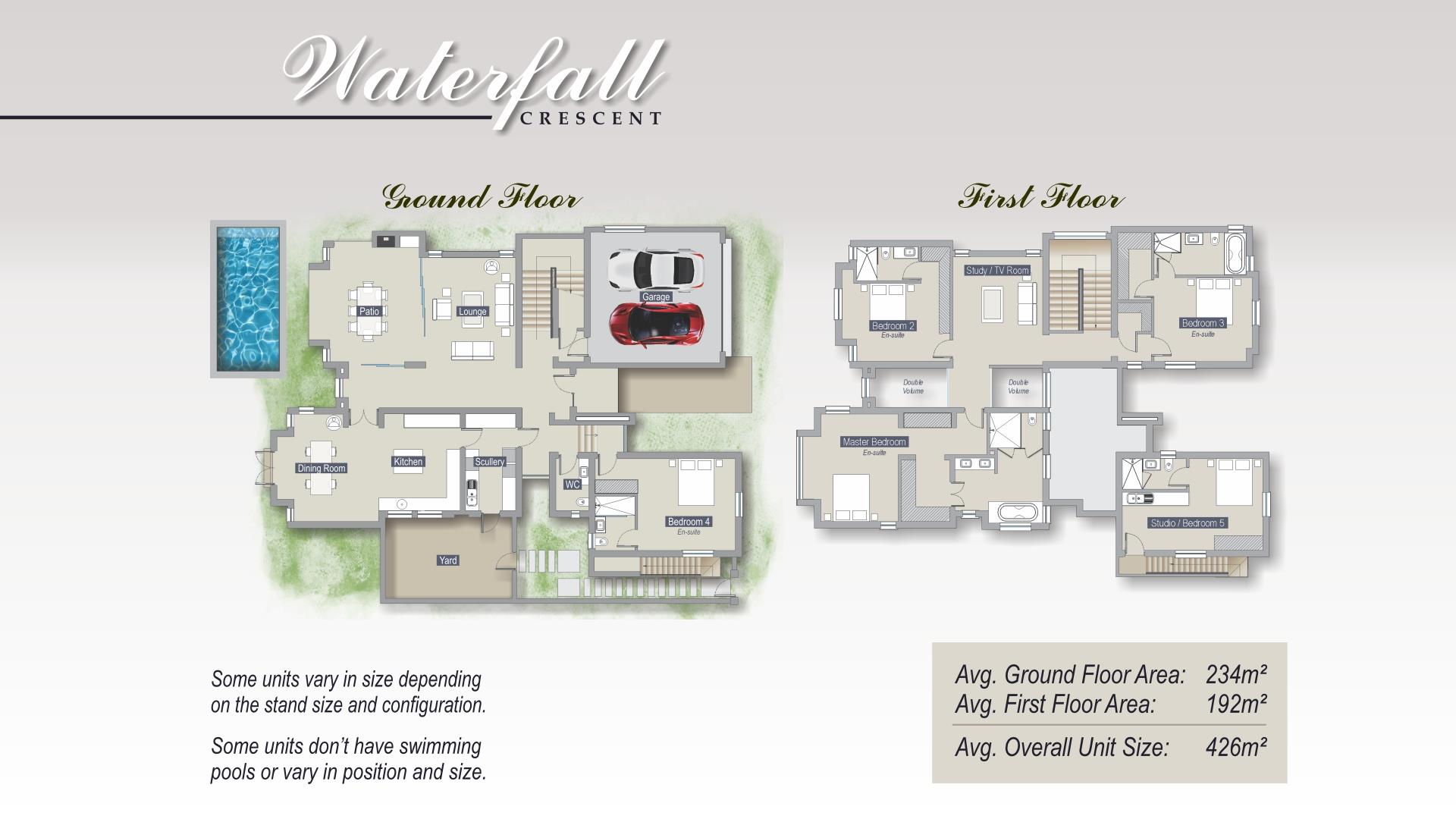 Waterfall Crescent is a precinct within Waterfall Estates consisting of 36 large (415m²) freestanding homes, most of which overlook the river embankments. Seeing as these homes form part of Waterfall Estates, tenants will benefit from the wide variety of lifestyle activities in this internationally acclaimed development. These include over 37 kilometres of walking trails, fishing dams, a clubhouse with a restaurant and a comprehensive double-storey gymnasium. Children of Waterfall Estates have direct access to Reddam House Waterfall, or to Curro Waterfall, without ever having to leave the secure perimeter of the development.